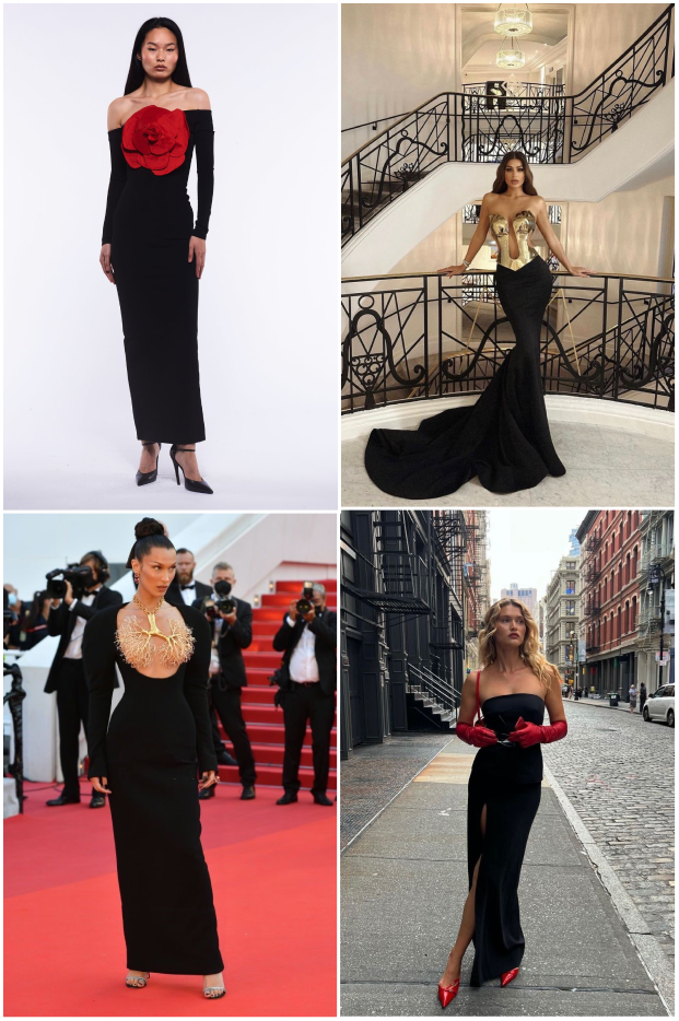 Предлагаем дать волю своей фантазии и добавить к черному наряду яркие элементы в золотых и красных цветах.